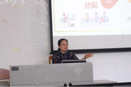 张键飞以“是否想成为一名英语老师”为切入点,与同学们交流了教师就业相关情况,并结合自身经历从学历、经验、性别、年龄、特长与潜在力六个方面分析中小学教师招聘现状,鼓励同学们早做生涯规划,找准职业定位。她精准定位学生所需,详细讲解了考取教师资格证和实习阶段的注意事项,为同学们提供了宝贵建议。同时作为教学、管理经验丰富的教师,她还从班会课程设计、团队协作共赢、英语教学等方面指导同学们未来的具体工作内容,并分享了珍贵资源。