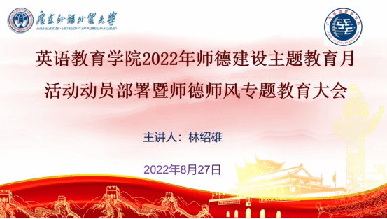 8月27日,伟德国际1946线上召开新学期工作布置暨师德师风教育大会,会议由党委书记林绍雄主持,学院全体教职工参加会议。