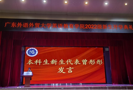本科新生代表曾彤彤表达了加入英教大家庭的喜悦与对大学四年生活的憧憬。她表示,英教学子应加强修养,接受挑战,完善自我,努力规范自己的言行,提高自身的思想素质,健全自己的人格,培养自己的责任心和使命感。她向全体师生致以真挚的祝愿。
