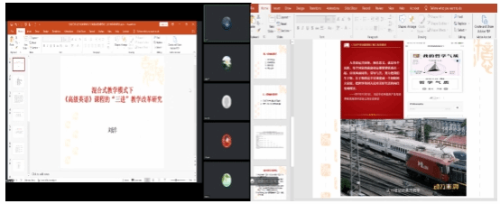 会议第三项议题由陈艾舒、陶玉梅、刘洋三位教师进行“三进”工作经验分享。师范系教师陈艾舒分享了英语演讲辩论课融入“三进”内容的方式,指出“三进”教改需从知识、能力和素质三方面着手,切实提高学生“讲好中国故事,传播好中国声音”的能力,并具体展示了课堂教学环节融入“三进”思政内容的实例,通过精心重构《英语演讲辩论》的教学内容和教学模式,使学生成为具备专业本领,家国情怀,全球视野,跨文化沟通能力的全方位人才。