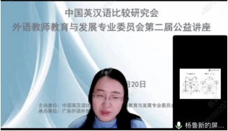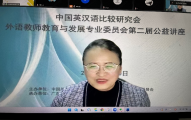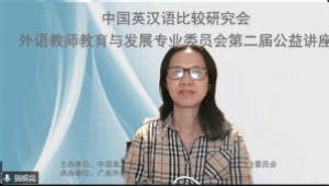 教育部基础教育外语教学指导专业委员会主任委员、中国英汉语比较研究会外语教师教育与发展专业委员会主任王蔷教授做开幕式致辞。王蔷教授指出,中国英汉语比较研究会外语教师教育与发展专业委员会自2009年成立以来,始终将推动我国外语教师教育与发展作为前进的目标。十四年来,已经初步形成了一支高水平的外语教师教育研究队伍,在全国打造了本领域自己的学术名片,产生了非常积极的影响。委员会不忘初心,一如既往致力于学术活动的筹备和举办,本次公益讲座将吸引更多有理想、有本领、有担当的青年学者,积极参与到外语教师教育与发展研究中来,胸怀理想、志存高远,投身外语教师教育与发展事业,创造无愧于时代的精彩人生。