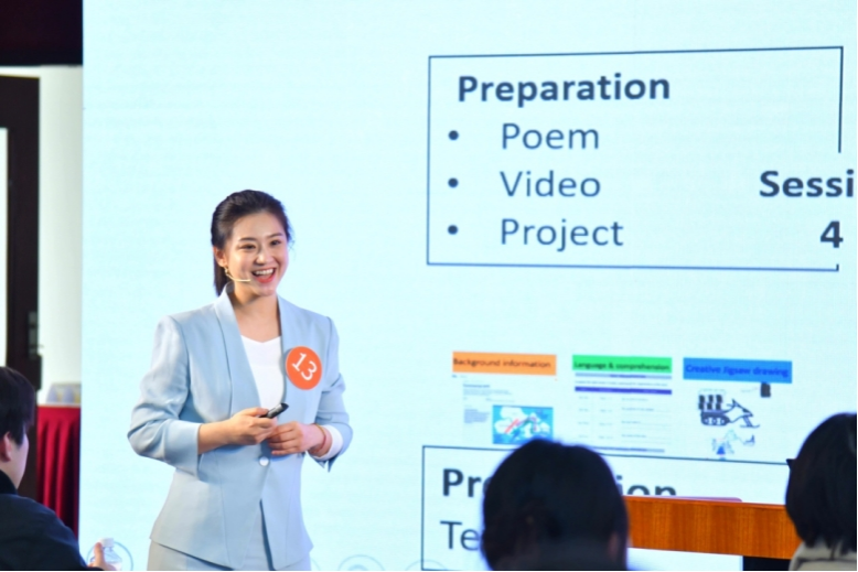 在多轮磨课和讨论后,范栩颖坚持“主题引领”和“以学生为中心”的教学理念,最终确定设计方案,在比赛中一展风采,赢得了全场的喝彩,得到授课环节的最高分91.78,以决赛第一进入全国总决赛。