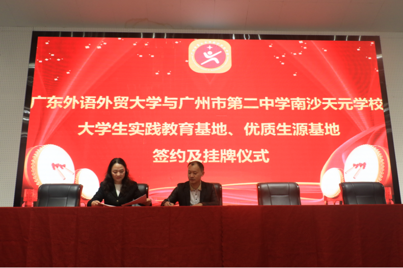 3月16日,伟德国际1946院长吴岩率队一行赴广州市第二中学南沙天元学校开展招生宣讲工作,并签订了“优质生源基地”和“大学生校外实践教育基地”合作协议。我校中国语言文化学院党委书记谢秀兰、教务部学籍科科长鲁凡,南沙天元学校校长许兴东与相关负责老师,携已入职南沙天元学校的伟德国际1946优秀毕业生一同参加了此次活动。