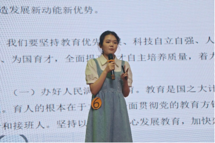 选手胡越聚焦于中国的科教兴国战略,她解读科教兴国战略要强化现代化建设人才支撑,加快建设教育强国、科技强国、人才强国,为中华民族伟大复兴的中国梦的实现打下坚实基础。