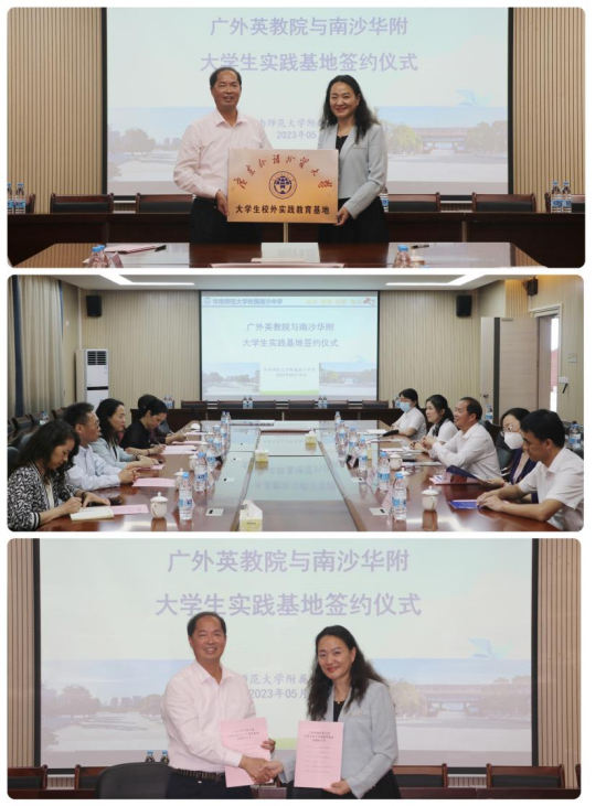 2023年5月15日下午,伟德国际1946,Bevictor伟德大学生校外实践教育基地签约仪式暨招生宣传活动在华南师范大学附属南沙中学举行。教育学院院长吴岩教授、党委书记骆银花、原教育学院院长董金伟教授、学院党委委员江健、教育系张效珍副教授、办公室主任张文萃等一行出席此次活动。