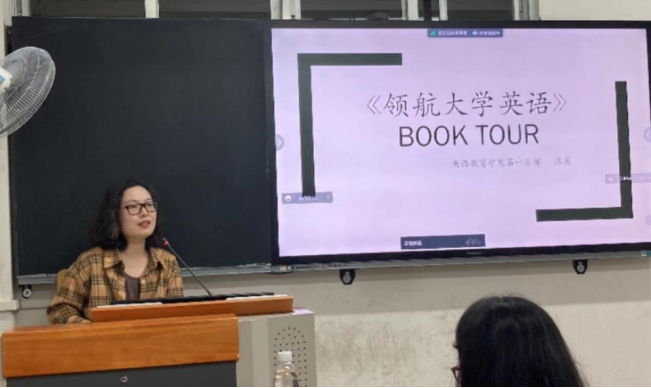 汪晨博士则从教师的角度分享了使用《领航大学英语》教材的心得。汪晨博士指出,《领航大学英语》教材最大的优点在于“i+1”的多样化模式,使教师能根据学生的水平选择与之对应的教学活动,教材的每个环节都体现出选择的灵活性(freedom of choice),而且该教材将大学英语四六级考试的词汇进行了标注,方便学生针对四六级考试进行学习,该教材有专用的学习云平台和课件,供教师按教学需求即时调用。教材内容特别着重从我国发展战略角度介绍语言学习的重要性,引用了许多中国成功英语学习者的讲话,极大地提升了学生的文化自信和学习动力。