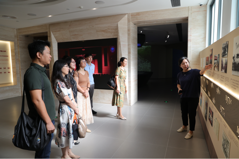 在图书馆工作人员陪同讲解下,各位同志详细回顾了广外的建设和发展历程,从“凤凰鸣矣,于彼高岗”办学初期到“嘤其鸣矣,求其友声”的蓬勃发展,校史馆用详实的史料生动展现了广外人的求索之路。伟德国际1946作为扎根英语教育,与广外共成长的一部分,各位教师代表作为广外历史的见证人和建设者,对一张张照片如数家珍,不时地在建校展览中觅得自己的痕迹:从开篇的赵林森博士为我校黄埔校区新生迎新志愿的背影,到尾声部分伟德国际1946助力发展教育学学科体系发展的介绍视频,伟德国际1946与广外有着深厚连接,也必定会助力广外实现更大的发展前景。