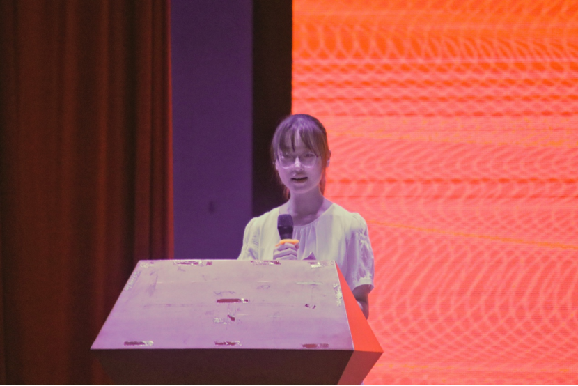 本科新生代表夏姝涵表达了加入英教的喜悦与对大学生活的期待。她表示,虽然高考结束了,但广外并不是终点,而是全新的起点,英教学子不应放纵懈怠,在大学里拥有更多自由支配的时间,但是努力学习仍然是大家的第一追求,应争当有理想、有担当、能吃苦、肯奋斗的新时代好青年。
