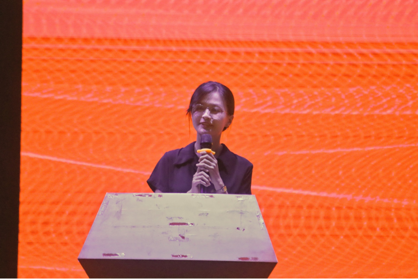 英教学院校友代表陈懿婷分享了自己的大学生活与支教经历。她鼓励新生多实践,做到学、思、行三者结合,在教学过程中用心去感受,在实践中获得新的思考。她指出,接受高等教育是为了学会找到自己,希望同学们在广外英教的四年里探索出属于自己独一无二的路。