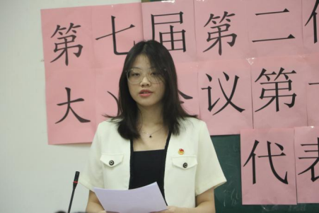 校学生会代表王潇诺对本次大会的顺利召开表示热烈的祝贺,对学院过去一年内围绕思想引领、组织发展、服务青年三个方面开展的各项工作表示肯定,同时她鼓励学生骨干坚定理想信念,铭记全心全意为同学服务的宗旨,倾听同学们的心声,积极创新。她希望学院候选人们不忘初心,在学生工作中有所作为、有所收获。此外,她对支持学生会工作的学子表达衷心的感谢,希望在未来能继续踔厉奋发、笃行不怠,凝心聚力开拓学生会发展新局面,为学校建设贡献青春力量。