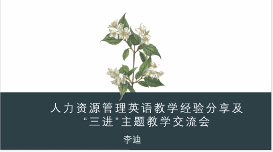 首先,交流会根据“三进”中习近平新时代中国特色社会主义经济思想的十个明确内容,详细介绍了创新、协调、绿色、开放、共享的发展理念,形成新发展论以及构建人类命运共同体理念和全球经济治理论这两个明确。随后,李迪老师从课程设计、教学经验和学生反馈三个角度对所教授的人力资源管理英语课程进行了介绍,并提出要遵从以学生为中心的教学理念,注重对学生在未来工作中会面临到的知识和能力的培养。她分享了如何将红色旅游、碳中和与碳足迹、新丝绸之路经济带等热点话题融入教学中去,由此激发学生主动了解人类命运共同体,培养民族自信。最后,邓谊老师和朱晓真老师提出了在教学中所遇到的疑问和困难,李悦、李碧燕和宫丽丽老师对此提出了自己的解决方法和意见。此次交流会内容详实,内涵丰富,与会老师们参与积极,讨论热烈。