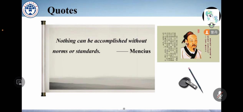 曾丹老师目前担任学院党委委员、第二教学部系部主任兼党支部书记,教学科研成果丰硕,曾荣获“南粤优秀教师”、伟德国际1946,Bevictor伟德第三届“师德标兵”、“青年教学十佳”、“教学优秀翼群奖”等荣誉,是多项课程思政示范项目和“三进”专项项目的主持者。课后,曾丹老师与线上线下观摩的教师进行深度教研探讨,王婓、张学进、黄蔷、李刚、韩艳梅等多位老师针对课堂教学提供了宝贵的意见和建议。