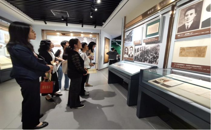 通过讲解员生动且全面的讲解,教师党员们参观学习了纪念馆内的《上下求索——中共三大召开的历史背景》《凝聚共识——中共三大的召开》《风起云涌——轰轰烈烈的大革命》《理想之光——新中国成立前牺牲的中共三大代表》四个主题展览,深刻了解中共三大召开的历史背景、重大意义和深远影响,认识到中国共产党成长壮大的艰辛与红色政权来之不易。纪念馆参观结束后,全体教师党员在展览馆前重温入党誓词,坚定理想信念,牢记使命担当。