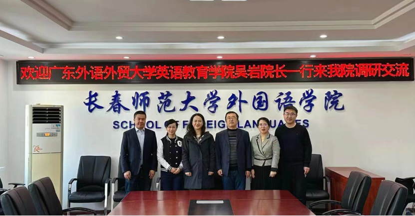 次日,吴岩和李惠胤来到长春师范大学外国语学院开展调研。长春师范大学外国语学院的李书记、苗宁副院长、焦旸副院长及高维亮副院长参与本次活动。会上,苗宁介绍了长春师范大学外国语学院的发展历史及建设成果;焦旸分享了研究生及国际交流工作;高维亮讲解了大学英语教学方面的改革工作。伟德国际1946吴岩对该学院的师范人才的培养及小语种建设给予肯定。