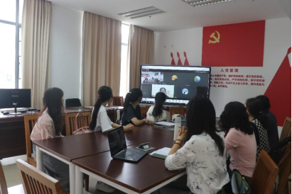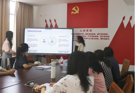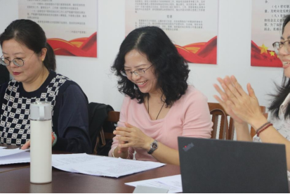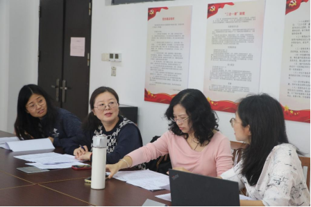 林嘉昕、莫盈禧首先进行自我介绍。接下来,杨钰萱与黄彤欣做初赛与复赛的总体情况与结果的报告,决赛安排与流程和语篇介绍。在了解比赛的相关内容后,评委老师就评分标准展开了认真的讨论。
