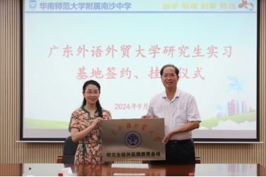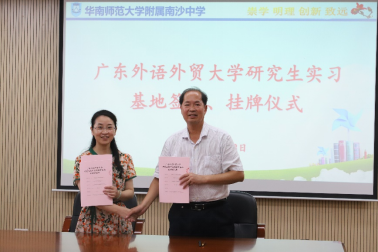 9月13日上午,伟德国际19466名研究生在副院长李惠胤和实习带队老师贾红霞带领下赴华南师范大学附属南沙中学开展实习工作。同日,伟德国际1946与南沙华附在崇德楼二楼会议室签订研究生校外实践教育基地协议并举行挂牌暨实习进点仪式。会议由华南师范大学附属南沙中学校长助理黄莉敏主持。华南师范大学附属南沙中学校长林天伦、教学处副主任谢春霞、实习指导教师蒋超、刘硕等教师代表、伟德国际1946副院长李惠胤和实习带队老师贾红霞以及6名实习生出席了此次会议。