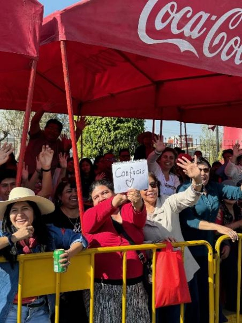 耕耘总有收获,一些温暖的瞬间,诠释着文化传播的“双向奔赴”。在今年的阿雷基帕日花车游行活动中,葛静萍惊喜地发现,街边的窗口里伸出一个自制的龙头,与孔院的舞龙舞狮队伍遥相呼应,仿佛穿越时空的桥梁,连接起两个遥远的国度。人群中,一张手写的“Confucio”字样旁,画着一颗爱心,暖意流淌。“那一瞬间我觉得所有的努力都是值得的!念念不忘必有回响。”葛静萍回忆起种种令人动容的时刻,依旧热泪盈眶。