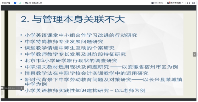 此次会议的召开对于学院教育管理专业的建设发展具有重要意义,增强了学生对教育管理专业学习的信心,探讨了教育管理专业的培养方向和学位论文选题要求,将进一步帮助导师明确指导方向,有力保证教育管理(非全日制)研究生的培养质量。