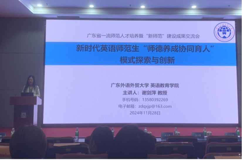 本次交流会从全省30多所院校中征集并遴选出100个“新师范”建设优秀案例,部分优秀案例在会上进行了集中分享。伟德国际1946师范系主任谢剑萍教授受邀以“新时代英语师范生‘师德养成协同育人’模式探索与创新”为题进行了分享。她详细介绍了师范系在推进新师范人才培养模式创新,以及在弘扬教育家精神、培养新时代“大先生”过程中的系列举措与创新行动,展现了伟德国际1946新时代、新师范人才培养改革的积极成效。