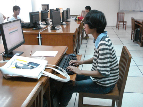 比赛采用限时网络写作的形式,使用句酷批改网进行为时3小时的比赛。上午9:00正,网络系统公布题目,选手开始写作;3小时内,选手可以进行无数次提交,修改,再提交,再修改,系统会以选手在中午12:00比赛结束时前最后一次提交的作品作为该选手的参赛作品。选手在写作和修改时还可以使用句酷网提供的网络词典进行查询单词。比赛由于网络写作比赛的场地灵活,选手可以自行选择在各自宿舍﹑家里﹑课室﹑图书馆等地利用联网电脑进行写作,也可使用学校提供的比赛场地参赛。而在南校区实验楼B205室,记者见到部分选手们正在网上“挥洒笔墨”, 时而颦眉沉思,时而敲键“疾书”。选手们不紧不慢,满怀信心地面对这次选拔赛,尽情地书写属于自己的风采,整场比赛有序地进行中。