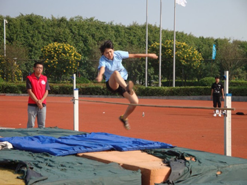 下午两点李雪盈再次出现在了跳高的赛场上,一次又一次完美的跨越,在每一次成功地跨过一定高度之后,她又尝试着向更高进发,最后她再次完美突破,在全校选手中最终排名第五。早上出现于200米赛场上的郑伟钧下午也出现在了男子跳远沙坑旁。在很多比赛中最能考验默契度和最能印证团结的力量之大的莫过于接力赛了,在女子4*100接力中,英教的选手们身穿背后印着英语教育的大字的蓝色运动服出现在跑道上,比赛开始信号打响后,接力棒在她们手中稳稳地传递着,全场她们始终为英教奋斗着,直至终点,女子接力最终排名为第八。整个下午英教的压轴也是全天中最考验耐力的一个项目,它也同样带动着英教观众的心-男子3000米。来自12级的林少灿,13级的黄国生参加了比赛,林少灿昨天已经参加了1500米并且排名第九,今天他又再次出现在3000米的起跑点上,观众表示佩服并为之加油鼓气,对黄国生观众也表示极力支持。在经过一圈又一圈,他们始终选择着坚持。3000米的坚持,其背后凸显的是无穷的力量。