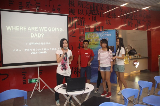 9月20日上午,WTalk全英主题分享会第10期在我馆一楼阅读体验区如期举行。本期活动以社会讨论热点《爸爸去哪儿了》为主题,引发了一场或温馨、或激烈、或引人深思的有关爸爸与家庭教育的话题讨论与分享。