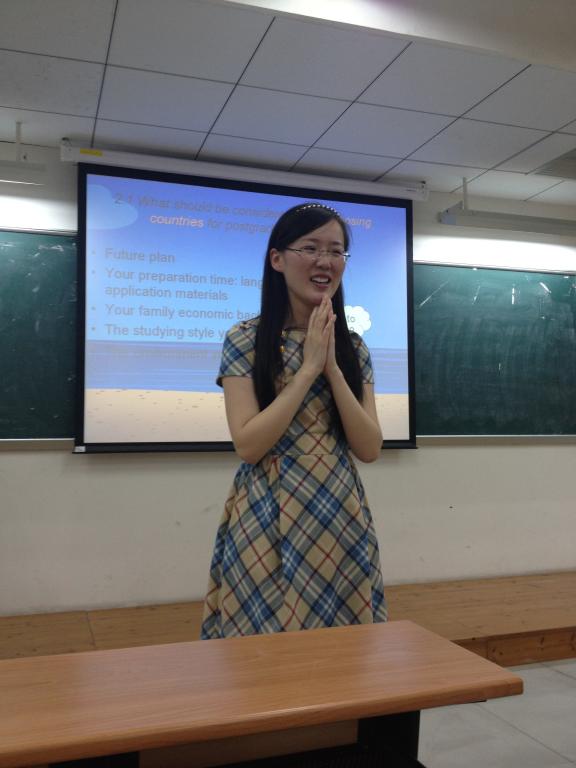 首先,刘芳彤师姐用一口流利的英文简单介绍了分享会的流程,尽管师姐在牛津待了大半年的时间,但并没有十分明显的英式英语口音,她谈到,在去牛津前,自己有苦练两年的英音,但在留学以后,她改变了一些看法,最起码对她而言,现阶段毋需过于注重表达的形式,她更看重的是意义,强调了英语表达的流畅性。
