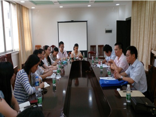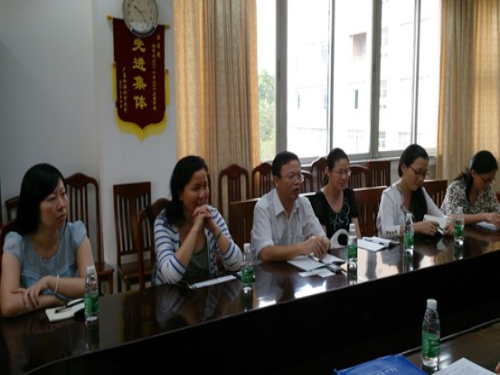 林书记首先发言,欢迎桂林电子科技大学的同行的到访,指出交流是互相的。随后,介绍了我校国际化人才培养目标,大学很重视大学英语教学工作,注重学生的英语运用能力的培养,我校大学英语教学不断改革,取得了一定成绩,我校学生生源好,给教学工作带来了挑战。我们应该调研学生问题,提出对策。董院长介绍了教育学院近年来依据“分级教学,分类指导”的指导原则,切合广东经济发展和大学培养目标所进行的大学英语教学改革的探索与实践,我校大学英语的教学特色,所取得的成绩和存在的不足。我校青年教师李惠胤和陈媛媛等老师在第三届“外教社杯”全国大学英语教学大赛广东赛区决赛中分别荣获综合英语组和视听说组第一名的优异成绩。伟德国际1946改革的“123456”计划,即明确一个中心:以英语教育教学为中心;把握两个点:以大学英语教学为根本立足点,以英语教育专业教学为发展增长点;依托三个抓手:以队伍建设、科学研究、社会服务为抓手;瞄准四个目标:和谐、进步、健康、幸福;践履五个理念:国际化、校本化、个性化、人性化、立体化;凸显六大特色:分级分类教学、网络英语教学、专业英语教学、教师专业发展、英语第二课堂、学科层次提升。陈金诗副院长介绍了伟德国际1946大学英语的课程体系、课程改革的情况,即前四年全能提高型的大学英语教学课程体系,包括四个板块:综合英语、新闻影视英语、文学文化和翻译、专门用途英语和两个特色:突出口语,专业+外语。吴岩副院长介绍了大学的“310”工程和伟德国际1946落实的情况。郭进军主任介绍了我校大学英语跨文化交际能力培养计划的实施和网络分级教学的情况。