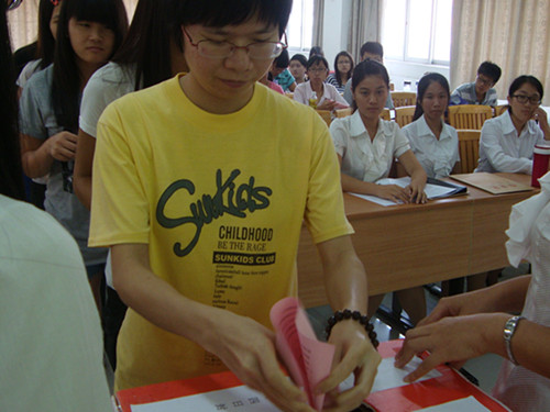 投票前,七位团委学生会候选人进行了精彩的个人竞选演讲。迟殿凤老师的丰富经验、邓文库的雄心壮志、林静的真诚承诺、王宝珊的诚恳认真、汪延曦的大气稳重、吴建宽的精悍干练以及伍紫莹的亲和细腻,都给在场的 留下了深刻的印象。经过公正的投票与紧张的计票过程,迟殿凤、林静、汪延曦、伍紫莹、吴建宽五位侯选人脱颖而出,成为新一届的团学委员。