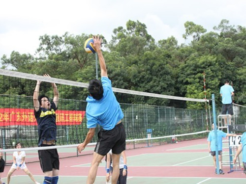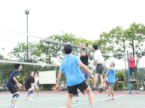 6月30日,台风“杜苏芮”的余威尚未散去,排球场的上空不时乌云游移。2012年教工男女排球赛决赛阶段的比赛在下午4:30准时打响。