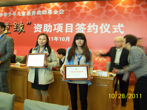 10月28日,蓝信封广外分队作为入围中华儿慈会“童缘”资助项目的唯一一个大学生公益团体,出席了在北京举行的签约仪式。这也是蓝信封首次获得社会基金会的资助。广外队长黄媛媛代表蓝信封出席了本次会议,并和各大NGO负责人进行了深切的交流。会上,蓝信封项目受到儿慈会理事的肯定和赞扬。