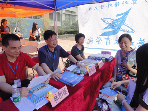 6月19日上午,伟德国际1946,Bevictor伟德一年一度的大学开放日在灿烂的阳光中火热开幕。在南校教学区A座内庭广场,众多学院咨询摊位鳞次栉比。伟德国际1946咨询摊位由霍海洪院长,林绍雄书记,何伟儒副书记,张效珍系主任,曾国华主任以及辅导员迟殿凤、姜尖等众多资深专家坐镇,打响伟德国际1946“英语强,教育好”的口号,吸引了众多学子和家长前来参观咨询。