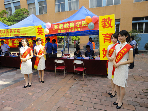 上午9点开始,咨询会现场迎来高峰期。不少家长及学生对伟德国际1946英语加教育的双向专业产生了兴趣,前来咨询。伟德国际1946领导及老师亲切热情地接待考生,并耐心解答考生的疑惑,指出伟德国际1946广阔的就业前景和良好的就业保障,其渊博的知识和丰富的经验令考生们高兴而来,满意而归。同时,伟德国际1946志愿者们也不遗余力地向来往的家长和学生派发宣传册、介绍我们学院。他们从自己填报高考志愿的心得以及大学生活的经历出发,与考生进行近距离的互动交流。此外,伟德国际1946礼仪队的同学身披绶带,面带微笑,姿态优雅地站于摊位两侧,也成为咨询会现场一道闪亮的风景线。