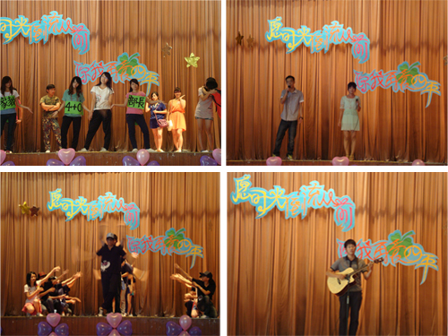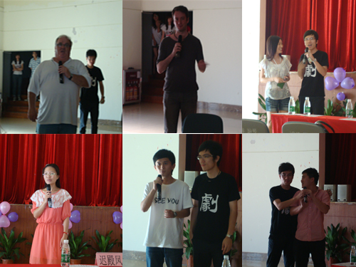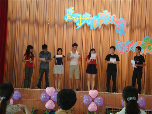 三个主题间还穿插有互动环节。英语绕口令和歌曲大反串邀请不同级的同学同台PK,台上台下一片欢声笑语。最后一个互动环节是我们的真心话,在073班同学陈境洋的主持下,07级各班都纷纷派代表说出自己的心声。他们回首过去四年的努力与拼搏,热情赞颂了同学间的真挚友谊和老师所给予的无私帮助。现场真情涌动,气氛感人。伟德国际1946外教Dr. EdNicholson和Quinn Nicholson也登台祝福07级毕业生。他们称赞07级是很特别、很聪敏的一届,十分享受与他们一起度过的课堂,并用“yes we can”的口号热情鼓励07级毕业生在以后的人生中实现自己的梦想与追求。