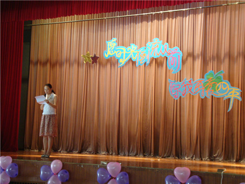 晚会开始,副院长吴岩发表讲话。她深情回忆了07级毕业生过往忙碌的身影,为他们所取得的成绩和成长而自豪。同时,她也劝诫,文凭不等于水平,学历不等于能力,希望07级毕业生在迈出大学后,也能经得起社会的考验,交出一份满意的答卷。