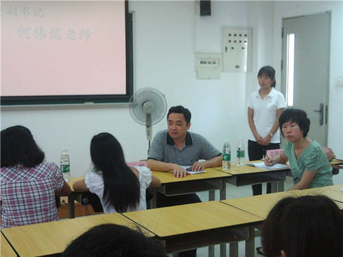 会议伊始,学院党委副书记何伟儒发表了讲话。他对新任的团学干部寄予了厚望,并与在场的学生干部分享了自己多年来的工作经验,对下一年工作的开展给予了指导。何书记首先让在场干部思考怎样才能做好学生干部,做一位学生干部有什么作用,之后又指出了作为一名学生干部应该如何开展工作,如何正确处理学习与工作的关系。最后,他语重心长地指出,英教学院是一个小学院,但是正因为人少,我们同学之间更加团结,各类活动更容易组织,各位学生干部应该充分发挥学院的优势,努力搞好学院的精品活动,为同学们办实事。何书记的一番讲话引起了在场干部们的深思。