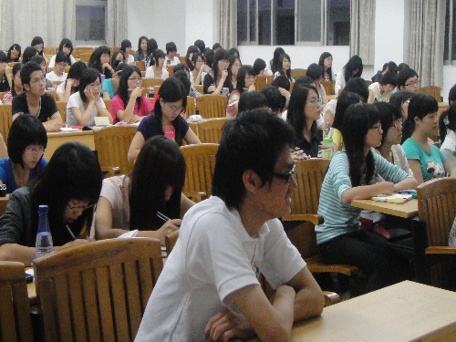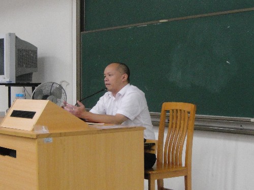 接着,刘教授用一句话——“古之学者为己,今之学者为人”引出了教师这个职业的一大特点:出色的教师为自己而活着,即教师对自己职业本身感兴趣,总以一种迎接的心态去对待每一堂课,每天都过着一种有“主题”的生活,也正因为有了主题,所有生活的碎片都为着这一个主题聚拢来了。这样,教师便生活在自己的“作品”当中。“在教师这个领域里,你能找到足够尊严和欢乐。”相反如果生活比较琐碎,没有主题,那你过的就会是一种平静而绝望的生活。刘教授还特别希望在座的07级学生们能“兴冲冲地”活在自己的“主题”之中。刘教授深入浅出又不失幽默的讲解令在场所有的师生陶醉不已。他还引用《圣经》里亚当夏娃的故事指出老师应该具有一种对知识的“爱欲”。教师在不断探索的过程中体味到的是智慧的痛苦,但更是生活的乐趣。