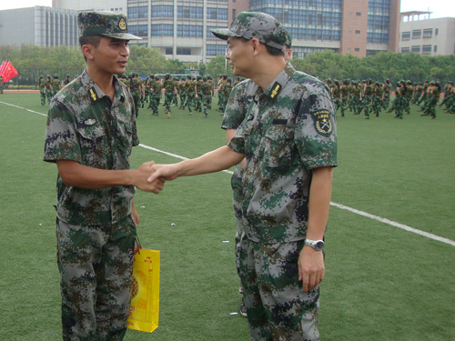 9月13日上午10时,伟德国际1946党委副书记易宗勇、团委书记迟殿凤等来到了军训场地,亲切地慰问了正在艰苦训练的伟德国际194610级新生们。