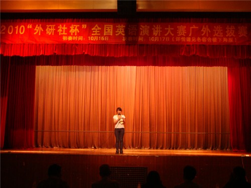 本次选拔赛吸引了来自包括国际学院在内的十几个学院的257名英语爱好者参加同时在南北两校区举行的初赛。初赛的比赛方式是题目为“爱国主义(Patriotism)”的3分钟的定题演讲。选手们用流利的英语从不同角度阐述了对爱国主义的理解和感悟,并以沉着的态度、自信的笑容以及潇洒的风格展现了广外学子昂扬向上、积极进取的精神风貌。经过一番角逐,共有8名非英语专业组和12名英语专业组的选手晋级决赛。