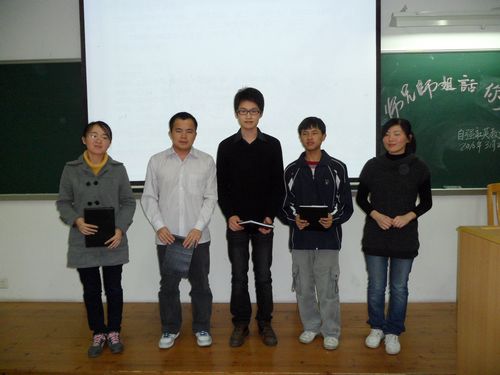 然后,大会进入各位同学最为关注的环节——师兄师姐为同学解疑。首先由关海银师兄为我们详细讲述关于专四的一系列问题,包括专四的题型,专四的应对技巧以及英语学习中应注意的问题和怎么学好英语。他重点解说了做好listening,speaking 和writing等方面的技巧,并提出了一些切实有效的方法。其次,黄少卡师兄就如何过好大学生活说出了自己的心得体会,并就有关普通话,计算机二级的考试为同学们指点迷津。他指出“三要”和“三不要”,即:要多看书,要定计划,要多学习;不要过于热衷搞活动,不要沉迷于电脑网络,不要随波逐流。他的忠告让在场的每位师弟师妹受益匪浅,也赢来了阵阵掌声。接着,袁伟红师姐则对4+0双专业和辅修进行了详细的解释,她说:“这些如何选择,很大部分是由个人兴趣决定的。如果没有兴趣,就算选择了,也不一定能坚持下来,要及早做好人生的规划,确定自己要做什么,并不断朝着这个方向努力。”袁师姐的讲话令在场的各位茅塞顿开,也明白了人生如何取舍的道理。最后,蔡宇翔师兄则着重从公务员的考试方面进行基本介绍。他告诉我们要考些什么,什么时候就应该着手复习,以及在考试中要注意哪些问题等等。