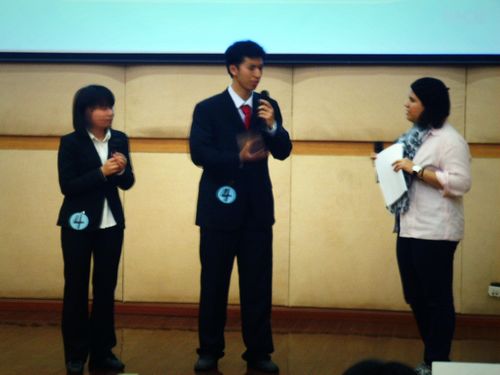 这次英教学院共派出两只参赛队伍,他们分别是由075陈文辉、072郑桂卿、082 阮婷组成的“Devotion”和由076黄健波、083林莉、091 徐梦琪组成的“Trans”。他们以富有创意的队伍介绍视频、优秀的随机应变能力以及队员之间的默契配合赢得现场观众热烈的掌声,体现了我们英教人自信、有创造力的一面。但无奈对手更强,最终,英教和英文学院的队伍不敌商英和英文学院,止步复赛。