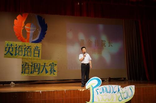 在比赛开始前,伟德国际1946院长董金伟作开场发言。他指出,这样的活动不仅仅只是一个activity,更是一次opportunity,可以提高同学们的语音语调水平。这样的活动不仅面向我们学院的学生,更是开放性地面向全校学生。最后他对所有为此次比赛付出的人表示衷心的感谢。