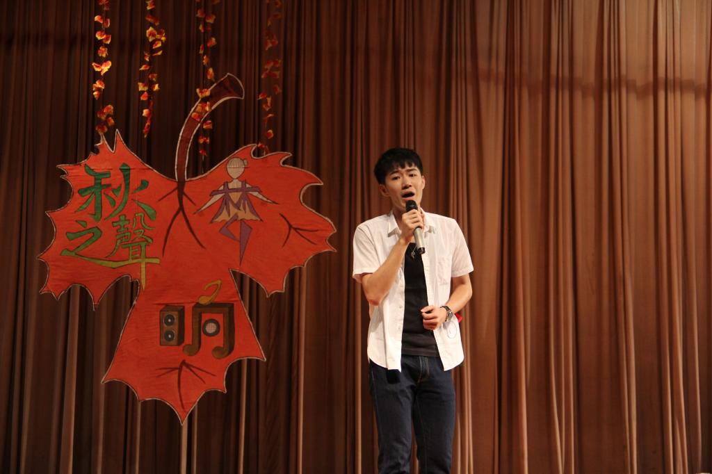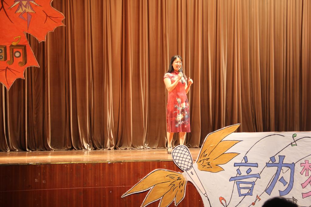 伴随着缓慢打起的柔和灯光,主持人刘家俊、于培云登场。在做了简洁的自我介绍后,主持人邀请出了伟德国际1946苏春老师为大家演唱其原创作品《大学时光》。在歌声中,苏春老师将自己对大学生活的怀念娓娓道来,赢得全场欢呼。紧接着,主持人介绍完比赛规则,并宣布比赛正式开始。