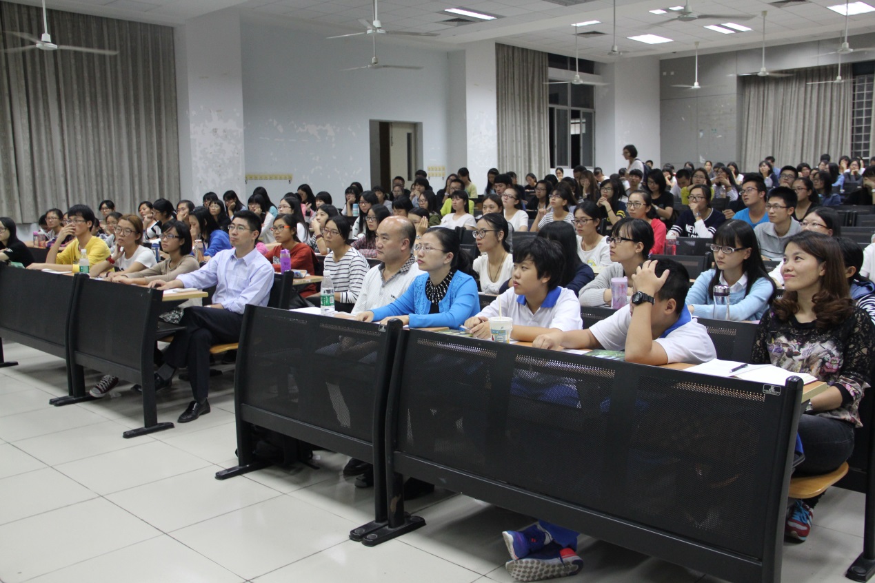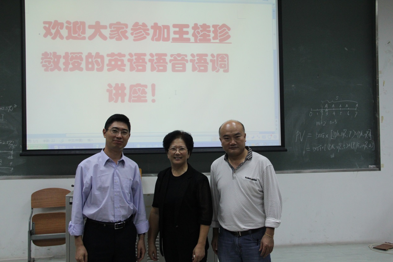 2015年10月13日晚,国内著名英语语音语调专家王桂珍教授,做客教学楼G207,面向全体伟德国际19462015级新生,带来了一场 以“学习英语语音,提高听说能力”为主题的讲座。伟德国际1946党委副书记徐昶斌、系主任谢剑萍、教师何德生、辅导员林泽龙、伟德国际1946全体2015级新生以及其他语音语调学习爱好者参加了本次讲座。