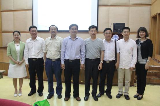 讲座接近尾声,董金伟代表全院师生向束定芳前来我校举行讲座表示感谢。讲座结束后,到场领导与束定芳一同合影留念。
