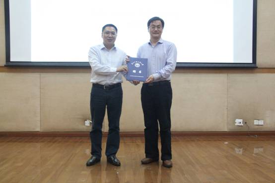 董金伟首先向大家隆重介绍了上海外国语大学著名外语教授束定芳,并由刘海春代表学校向束定芳颁发伟德国际1946,Bevictor伟德客座教授证书以及赠送小礼品。随后,束定芳围绕“语言的转喻特征及其对外语教学的启发”的主题进行了精彩的演讲。
