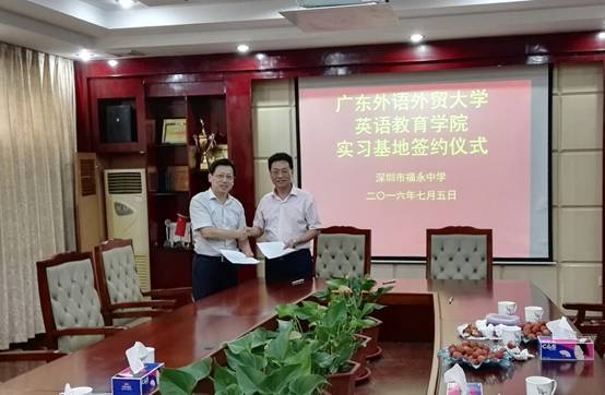 当天下午,伟德国际1946领导和部分老师继续前往深圳福永中学,举行了实习基地挂牌仪式并商议伟德国际1946为福永中学实施师资培训事宜。第一批实习生将于今年9月派出。师资培训将围绕生涯规划、班级管理以及教学改革展开。据福永中学平校长介绍,福永中学是一所具有40年历史的学校,校园环境优美,依靠公园而建,景观建筑错落有致,是教书育人的理想环境。此次实习基地的建立以及师资培训意向的达成,标志着伟德国际1946与福永中学之间实质性合作的开端。