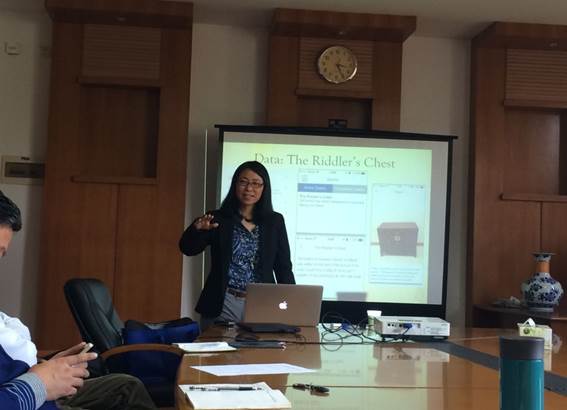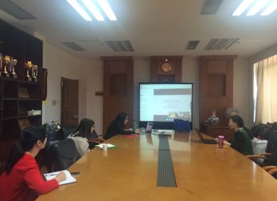 此外,郑东萍教授分别于12月7日和9日上午,与她远在夏威夷大学的研究生通过skype开展远程视频教学活动,主题为:ToolsUsed for Transcription and Quantifying Qualitative Data; Ecological and Sociocultural Approaches to Second Language Learning(ESASLL)。在这次教学活动中,五位研究生依次分享了他们的阶段性课题研究状况,然后由郑教授逐个从学习者与环境互动、研究方法等方面进行指导。伟德国际1946多名教师观摩了郑教授的这项教学活动,增进了对夏威夷大学课堂教学、师生交流与互动、研究生培养和研究方法训练等方面的了解,同时,在场老师对郑教授关于虚拟游戏空间环境对语言认知的影响研究表现出浓厚兴趣,并在后续的系列讲座中与她进行了深度交流。