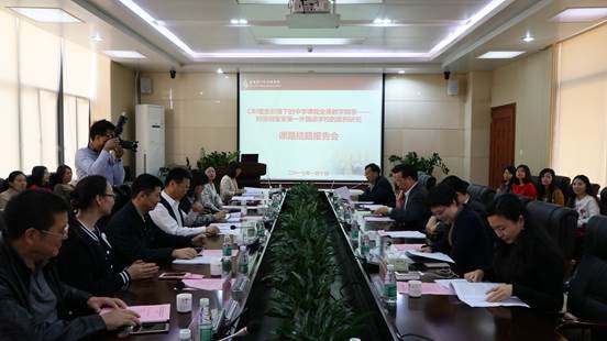 团队汇报完毕后,项目负责人董金伟教授做最后压轴的项目报告。他以时间为轴,辅以翔实数据,带领大家回顾了中加合作项目开展的四年艰辛历程,他感谢宝一外对于广外项目团队的信任,而正是这种信任让这个不简单的科学研究项目得以持之以恒,并最终形成了十三篇有分量的科学论文。在结题评价中,董金伟认为中加合作项目总体是成功的,对于学生、教师、学校、宝安区政府乃至深圳的基础教育都有着非常积极地正面意义。在这个项目的推动下,中加教师吸收了东西文化精华,他们取长补长,相互促进。在这个项目的推动下,学生喜欢耳目一新的教学模式,化被动为主动,收获了团队精神和实践能力。在这个项目的推动下,宝一外校园文化蒸蒸日上,跨文化主题活动有声有色。在这个项目的推动下,学校树立了国际化品牌,开始名声鹊起。在这个项目的推动下,宝安区的基础教育国际化走出了自己的路子,为深圳乃至全国的本土教育国际化提供了又一有益示范。最后,董金伟院长对于结项后工作进行规划部署,他说虽然宝一外项目结项了,但是课题研究远远没有结束,下一步项目团队还会扎扎实实撰写结项报告,结集出版课题论文,把研究成果更宽、更广推向社会。
