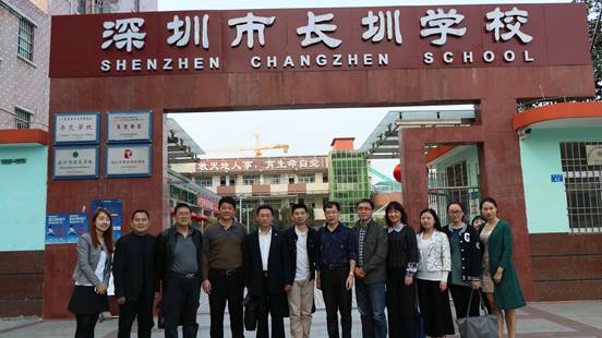 稍作休整后,10号下午,董金伟院长一行十人又赶往数十公里外的深圳改革新区——光明新区,参观深圳市长圳学校。该校由1949年成立,有着悠久人文历史,但在深圳教育日新月异的大背景下,作为领头人的叶兆波校长急需英教团队前来为该校国际化道路出谋划策。这个下午,英教教师参观了长圳学校校园文化走廊,实地勘探了在建的教学楼、办公楼、体育馆,并深入座谈。交谈中,董金伟院长、吴岩副院长、周富强教授、郭进军主任等纷纷从硬件设施建设、软件设施配备、校园文化活动开展、国际项目设计等不同角度,为长圳学校的国际化道路出切实可行的好路子。对此,叶兆波校长深受启发和鼓励。可见的是,在深圳这片以加速度建立的新区上,不久的未来,一个带着古老历史走来的学校会在其发展的道路上,透露着广外英教人曾经智慧的光芒及走过的痕迹,不久之后,来这里实习的英教学子也会把真知带入校园,把国际化的种子撒入孩子们心中。